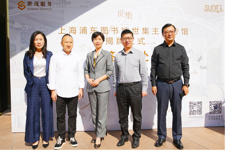 2020年10月11日,上海浦东图书馆SUNIT世集主题分馆揭牌仪式于上海世茂滨江花园SUNIT世集内举行。上海浦东图书馆与世茂服务的合作是一次全新尝试和探索,双方将会在现有合作基础上不断创新,将阅读浸润社区生活中,满足业主对人文、艺术、美学等精神需求。通过此次创新跨界合作,上海浦东图书馆将优质资源、创新方法与个性服务融合导入SUNIT世集,帮助打造以SUNIT世集主题分馆为中心的多元服务生态圈,从而使社区更有温度、城市更有温度。