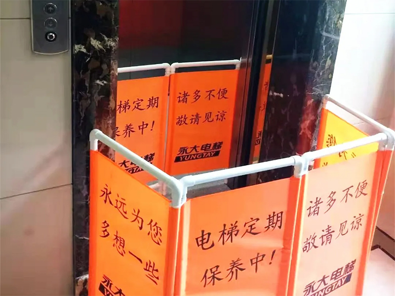 同时,在“体检”前,电梯“医生”们会在相关点位放置统一规范的安全护栏,除了放置在电梯首层轿门外侧、起到电梯正在维护保养的提示作用外,还会在轿厢内放置,避免电梯在某层开门时乘客误入。