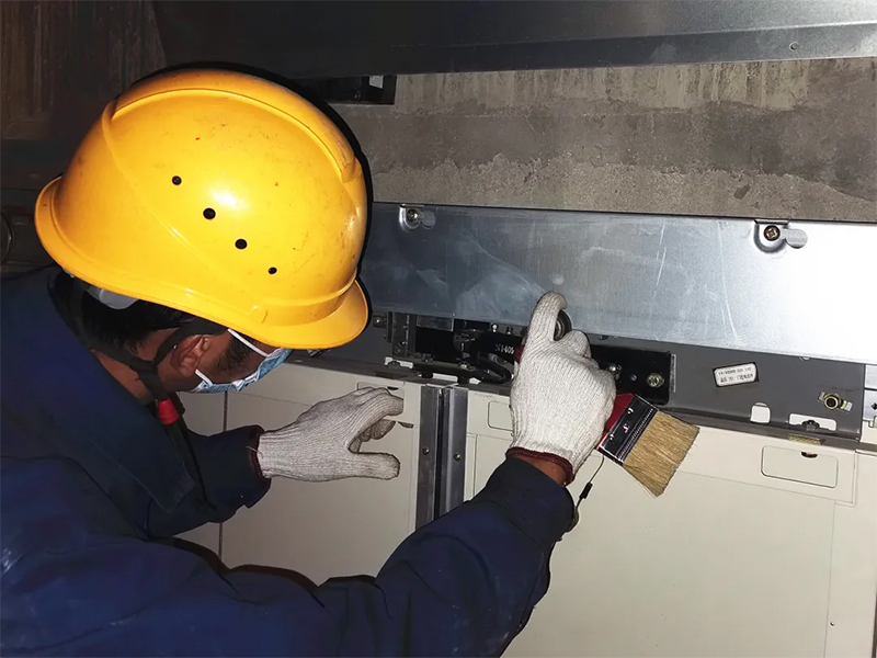 维保人员清理门轨积灰
